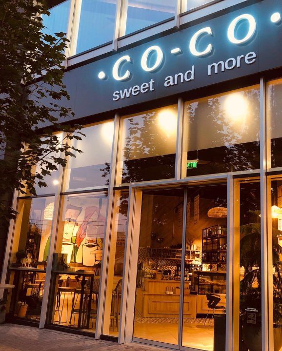 Co-Co Sweet and more отваря преди шест години на ул. „Ген. Гурко“ като малка, спретната и романтична сладкарничка, където всеки може да намери любимото си сладко изкушение. Но мястото доста бързо отеснява. Затова четири лета по-късно отваря врати заведението на ул. „Лъчезар Станчев“ 5 – в Софарма Бизнес Тауърс. То впечатлява с топъл и уютен интериор, който те кара да се чувстваш като удома си. Но най-хубавата част са сладката и солената витрина, където от пръв поглед си личи, че всичко е приготвено с много любов и желание.