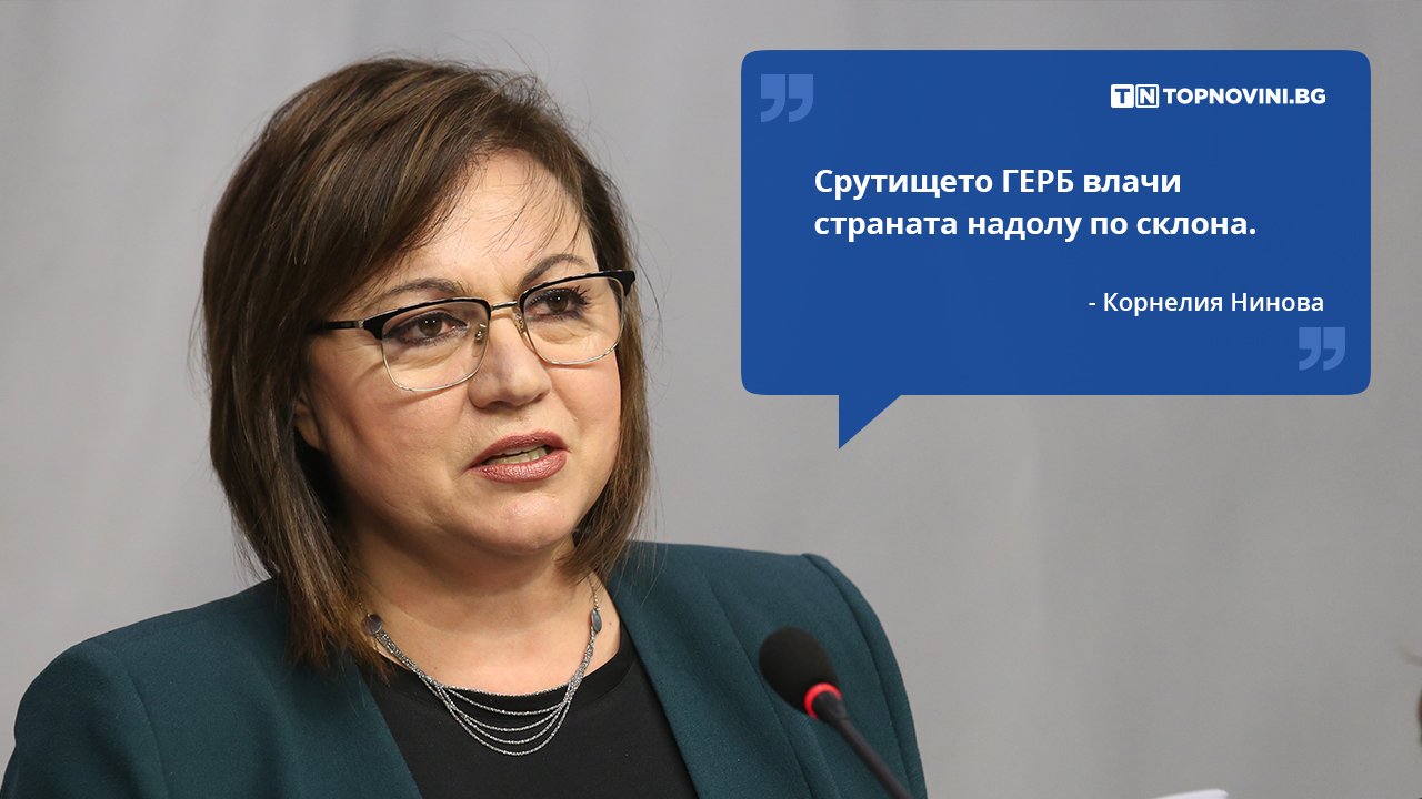 “Спрете се - нека спорим за реални политики с грижа за хората. Спрете се. България е изправена пред една от най- тежките социални и икономически кризи. Срутището ГЕРБ влачи страната ни надолу по склона”, написа лидерът на БСП Корнелия Нинова в своя профил във Facebook.