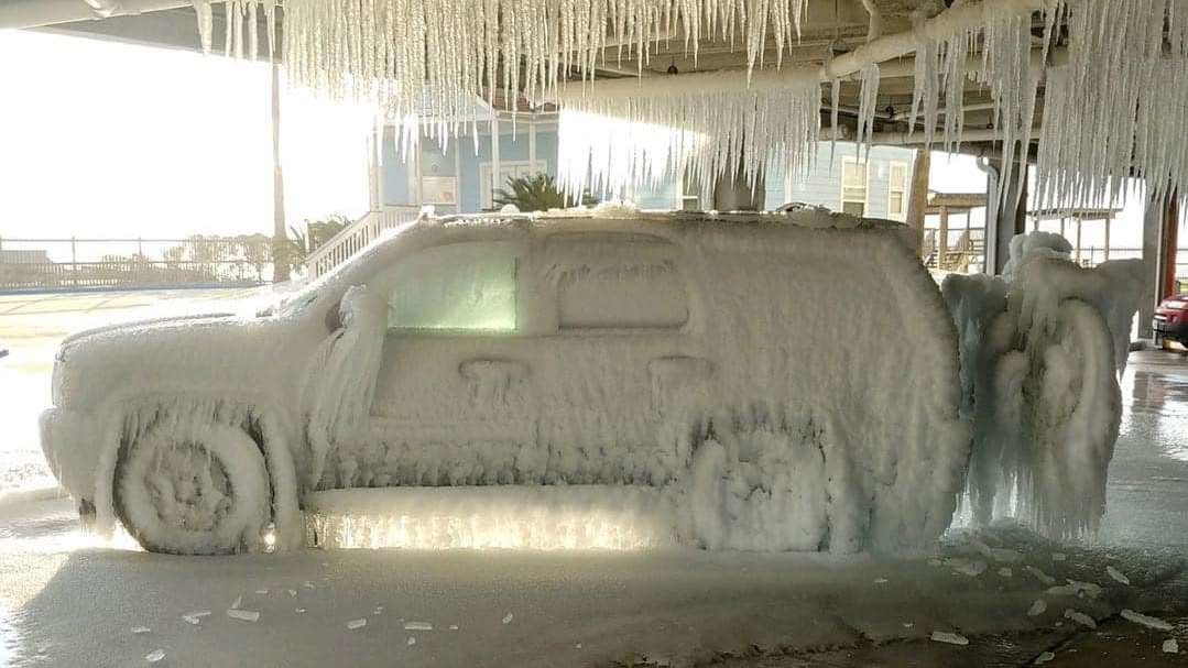 Жител на Галвъстън, Тексас, завари автомобила си изцяло погълнат от лед. Снимки бяха публикувани в социалните мрежи. Кърт Ширмър открил семейния автомобил с натоварени на него велосипеди замръзнал, след като през нощта над него се спукала тръба заради ниските температури, пише bTV.