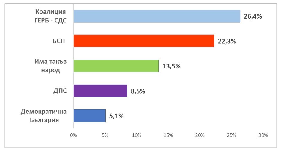 Възможно е да има оспорвана надпревара за третото място между „Има такъв народ” и ДПС. Предимството на ДПС е в огромния изборен опит и във високата стартова мобилизация на електората на партията. Електоратът на Слави Трифонов все още не е достатъчно категоричен в избора си.