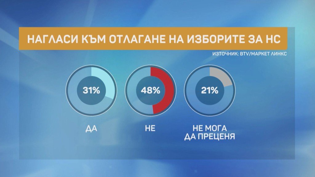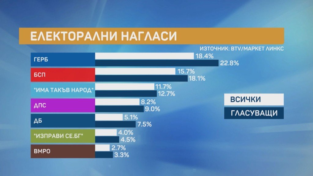 Това показва проучване, финансирано и реализирано съвместно от bTV и „Маркет линкс“, проведено сред 1026 лица над 18 г. в страната в периода 18-25 март по методите на пряко-лично интервю и онлайн анкета.