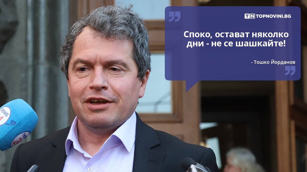 Трогателно е как всички ни навивате да направим правителство. Знаете, че стабилно правителство е, когато имаш мнозинство в зала със свои депутати или коалиционни партньори. Другото е правителство на малцинството. Този цирк сме го гледали с вас, с ваши бивши патерици, патерички, бастунчета. Това е грозна работа. Как ще постъпим ние, когато Радев ни даде мандата? Ще видите, споко остават няколко дена, не се шашкайте!". Това коментира председателят на паралментарната група на „Има такъв народ“ Тошко Йорданов по време на днешното парламентарно заседание.