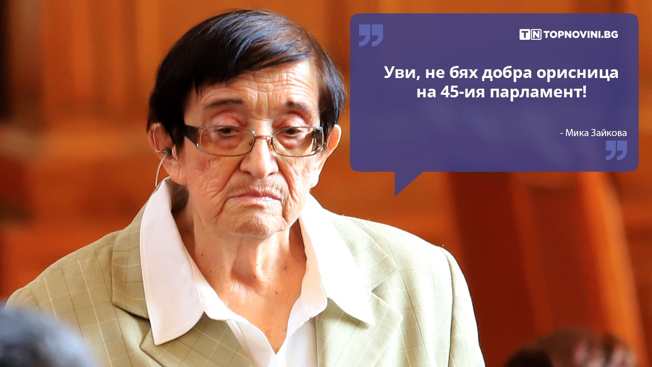 „Когато няма разбирателство и всеки е срещу всеки, така се получава. Не бях добра орисница на 45-ия парламент, за съжаление“. Това заяви Мика Зайкова от „Има такъв народ”, която откри Народното събрание като най-възрастния депутат в него. Тя не приема обвинението нейната партия да е виновна за краткия живот на 45-ия парламент.