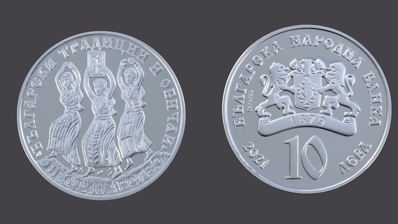 От 17 май Българската народна банка пуска в обращение сребърна възпоменателна монета на тема „Нестинарство“ от серията „Български традиции и обичаи“. Цената ѝ е 96 лв.