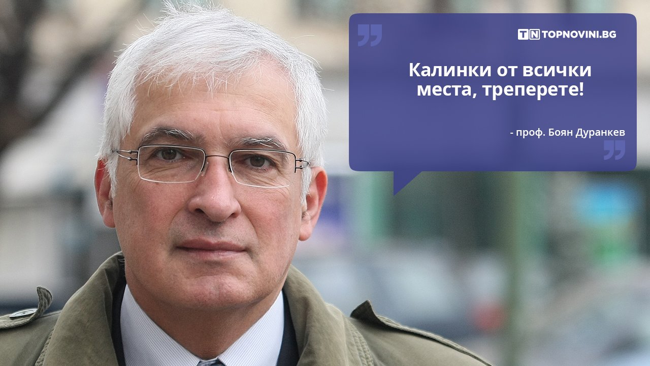 „Калинки от всички места, треперете! За 3 дни служебното правителство повдигна завесата на бизнес коалицията, която се разпореждаше с обществените средства, „насочвайки финансовите потоци“ към точно определени частни ръце!“. Това коментира икономистът проф. Боян Дуранкев във връзка с разкритията на служебния кабинет и извършените от него кадрови промени.