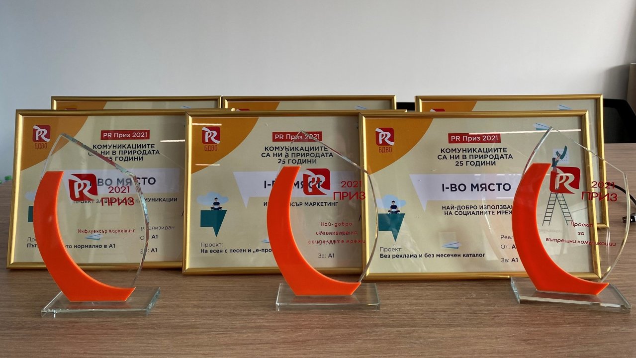 На специална церемония на 16 юни бяха обявени тазгодишните носители на наградите на БДВО - PR Приз 2021. Сред компаниите, които си тръгнаха с най-много отличия, е А1, които могат да се похвалят с три първи места и три втори. Телекомът е оценен най-високо от журито в категориите „Вътрешни комуникации“, „Най-добро използване на социалните мрежи“, както и „Инфлуенсър маркетинг“. Престижните втори места пък са в категориите „Корпоративна социална отговорност“, „Корпоративна комуникационна компания“ и „Комуникация на промените“.