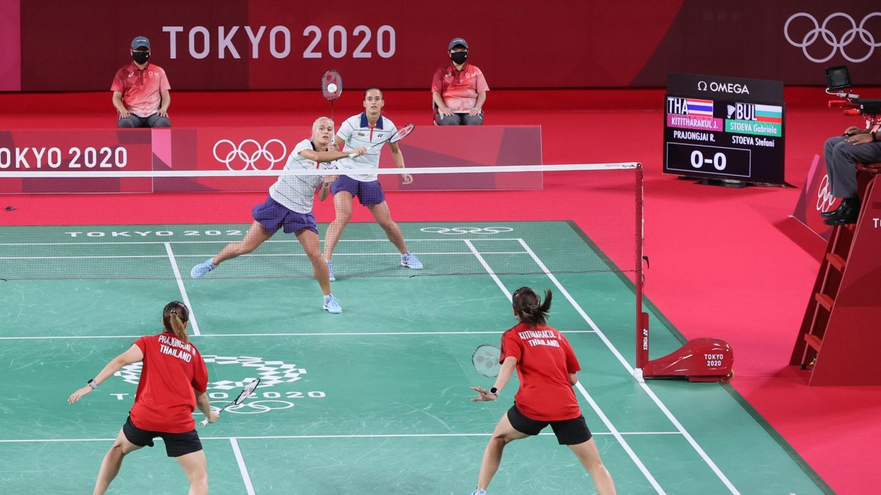 В своя последен мач в турнира при женските двойки сестрите Габриела и Стефани Стоеви извоюваха своята единствена победа на игрите в Токио 2020. В заключителния си мач от група D хасковлийките надделяха над тайладнките Джонгколфан Кититаракул и Равинда Праджонгджай с 2:1 (11, -16, 17) за 59 минути.