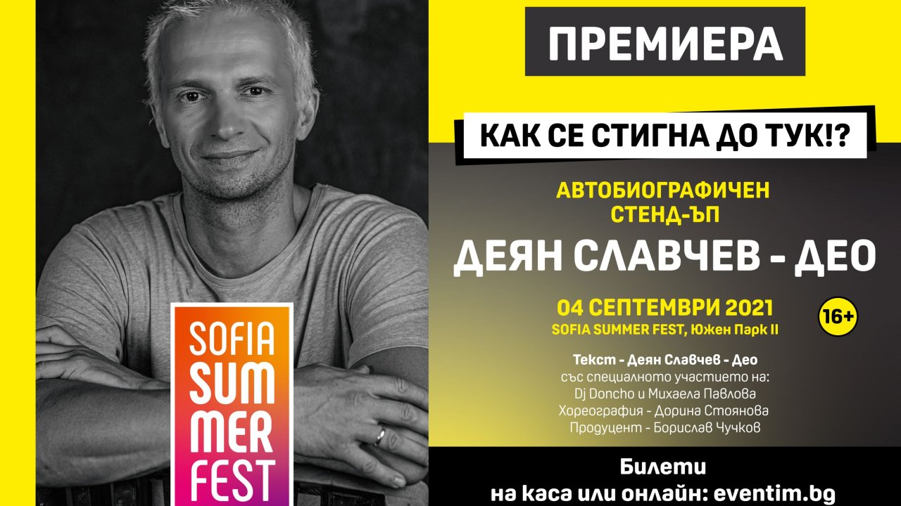 Известният телевизионен водещ Део ще има премиера на своя автобиографичен стенд-ъп спектакъл в рамките на Sofia Summer Fest на 4 септември от 20:00 часа.