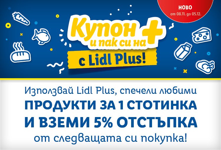 Повече информация за Купон+ и пълните условия, може да се открият на: www.lidl.bg/couponplus