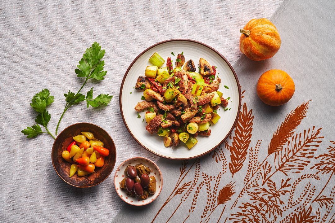 Когато в пазарската ни количка попадне крехко свинско месо, малко праз, печурки, тук там някоя друга суха чушка и две скилидки чесън и можем спокойно да се замислим - дали да не приготвим едно бързо и апетитно сезонно ястие, с което да нагостим цялото семейство или скоро идващите гости.