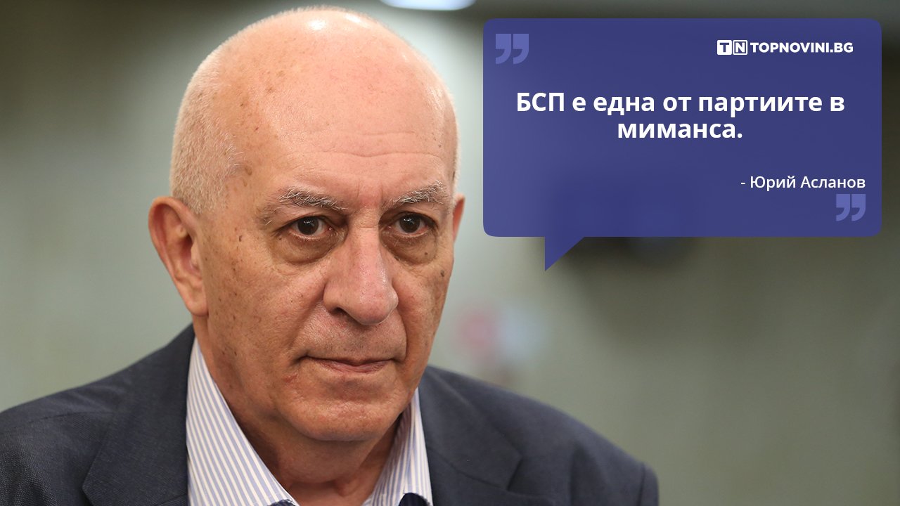 „БСП е една от партиите в миманса. Тя е сведена до нивото на една от средните или малките партии. Това е тъжният резултат“. Това коментира социологът Юрий Асланов, който е част от вътрешната опозиция на Корнелия Нинова. Според него оставката на Корнелия Нинова може да „отпуши“ БСП, която е очевидно маргинализирана.