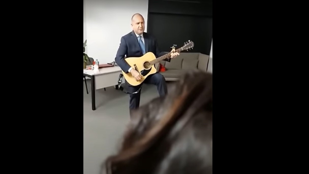 Президентът Румен Радев се оказа певец и китарист. На тържеството след победата на изборите той е направил солово изпълнение на китара.