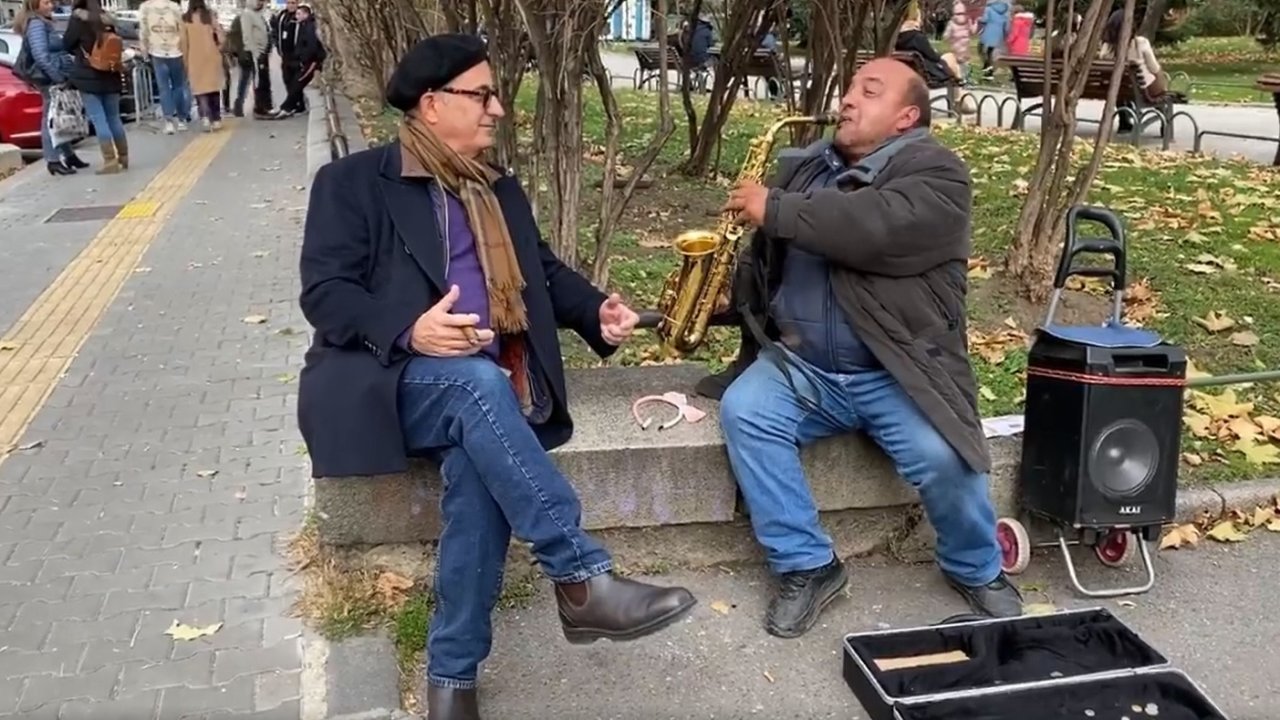 Първоначално музикантът не подозира кой седи пред него. Когато разбира, мъжът остава възхитен, става на крака и продължава да свири пред големия холивудския актьор.