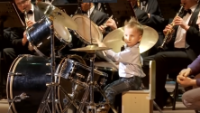 На видеоклип споделен в социалните мрежи и YouTube едва сега се вижда как малкото момче води цял оркестър да свири известния Кан-кан на Жак Офенбах през 2014 г.