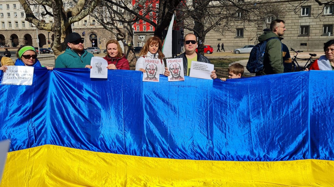 „Официалната позиция на българското правителство и на парламента, дори на президента, е, че те подкрепят изцяло, т.е. България подкрепя изцяло независимостта на Украйна и нейните граници в световно приетите размери и фиксирана от Втората световна война. Така че да ни връщат в 45-а година и да ни връща Путин в 97-а година към границите на света от онези години не сме съгласни. България отдавна е европейска страна. България отдавна е натовска страна“, каза участничка в протеста, цитирана от БНР.