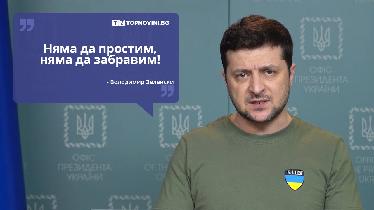 Няма да простим, няма да забравим! Това обяви украинският президент Володимир Зеленски в ново видео обръщение в неделя през нощта.