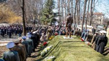 Цветанов и Благоев поднесоха цветя пред паметника на полк. Борис Дрангов в двора на академията и се преклониха пред паметта му.