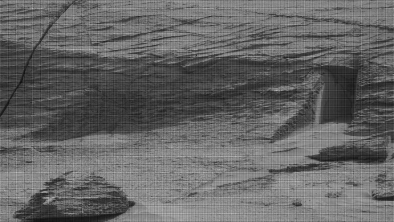 Върху снимката се вижда нещо, което напомня на изсечена в скалите врата. Към този момент няма категорично потвърждение от НАСА дали това наистина е някакъв вход в скалната маса, предаде bTV.
