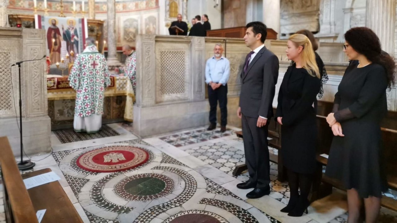 По време на литургията в базиликата „Сан Клементе“, където е погребан Константин Философ, Линда Петкова смени градинската рокля с изчистен черен тоалет.
