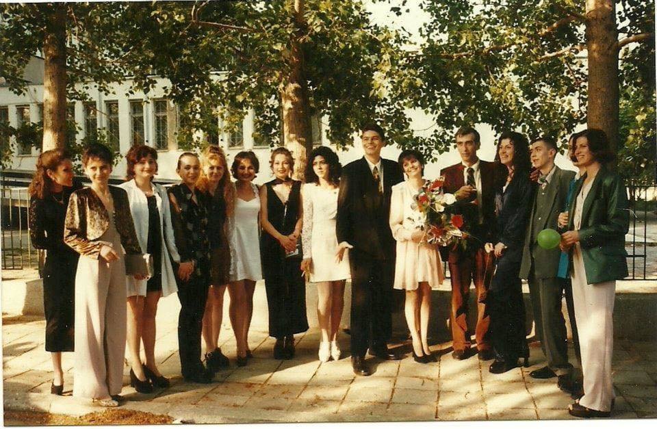 Преди 25 години своя бал празнува лидерът на партия „Възраждане“ Костадин Костадинов. След училище интересите му го отвеждат във Велико Търново, където завършва балканистика и право. По-късно защитава докторска степен по етнография в БАН. Влиза в политиката през 2007 г. като част от ВМРО, паралелно се занимава с писане на книги и снимане на документални филми, бил е и директор на историческия музей в Добрич. Преди да основе собствен партия Костадинов е бил зам.-председател на ВМРО. На снимката Костадинов е младежът с черен костюм в средата.