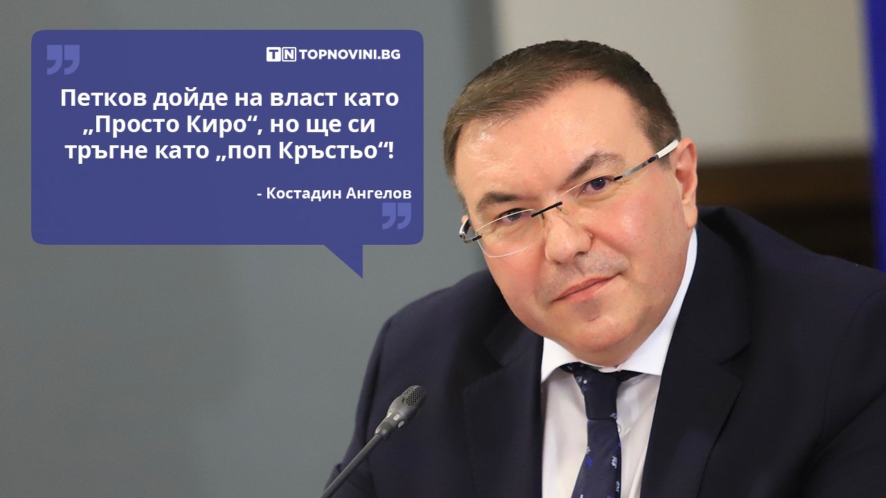 Кирил Петков дойде на власт като „Просто Киро“, но ще си тръгне като „поп Кръстьо“. Това обяви депутатът от ГЕРБ Костадин Ангелов по време на изслушването на външния министър по темата за Северна Македония.
