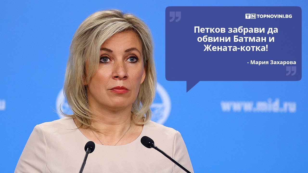 Кирил Петков забрави да обвини Батман и Жената-котка. Така говорителката на руското Външно министерство Мария Захарова коментира твърденията на българския премиер, че зад свалянето на правителството стоят трима български политици и руският посланик у нас.