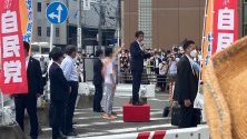 Бившият лидер на управляващата Либерално-демократическа партия е участвал в проява в град Нара преди насрочените за неделя избори за горна камара на парламента.