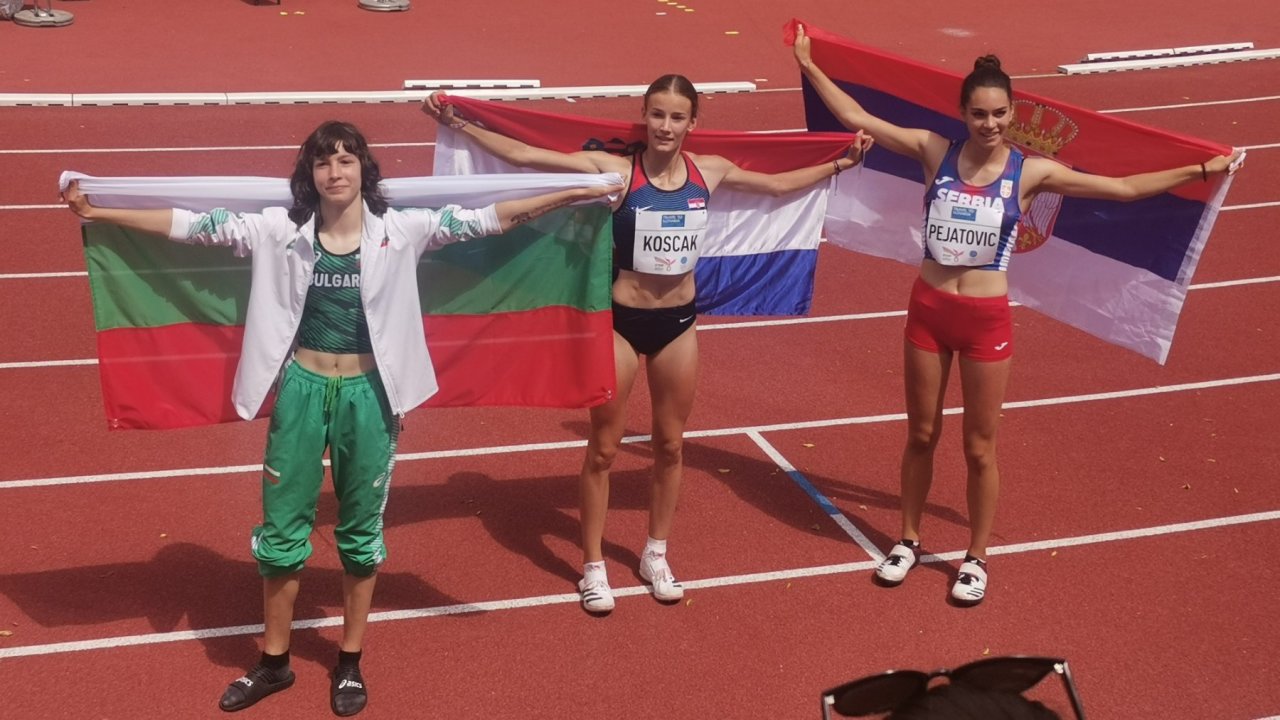 В скока на височина Ирен Саръбоюкова грабна бронза с личен рекорд. Още снощи Ирен преодоля квалификациите със 170 см, а днес във финала подобри с два сантиметра собственото си върхово постижение и със 180 см, заслужи място на почетната стълбичка. Победителка със 184 см е хърватката Яна Кошак, а среброто с личен рекорд от 182 см спечели сръбкинята Николина Пеятович.