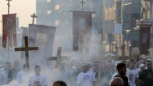 Начело на процесията бе колона от мотоциклетисти, следвана от колона от свещеници и мъже, носещи дървени кръстове.