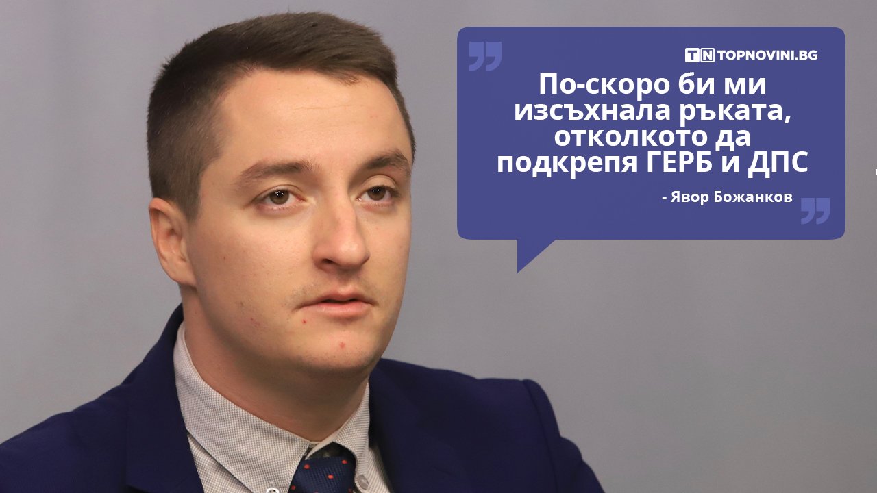 „По-скоро би ми изсъхнала ръката, отколкото да подкрепя правителство на ГЕРБ и ДПС“. Това заяви Явор Божанков от БСП във връзка с предложението на ГЕРБ Бойко Борисов лидерите да се отдръпнат и да се създаде контактна група за евроатлантическо правителство.