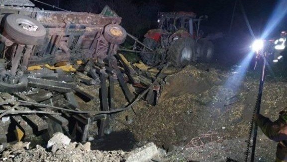 Според полския OSINT анализатор Ярослав Волски може да има 2 версии: ударът е нанесен от руска ракета или е от украинска ракета за противовъздушна отбрана. Но естеството на кратера от ракетата, останките на трактора и ремаркето, сочат към първия вариант - удар от руска ракета.