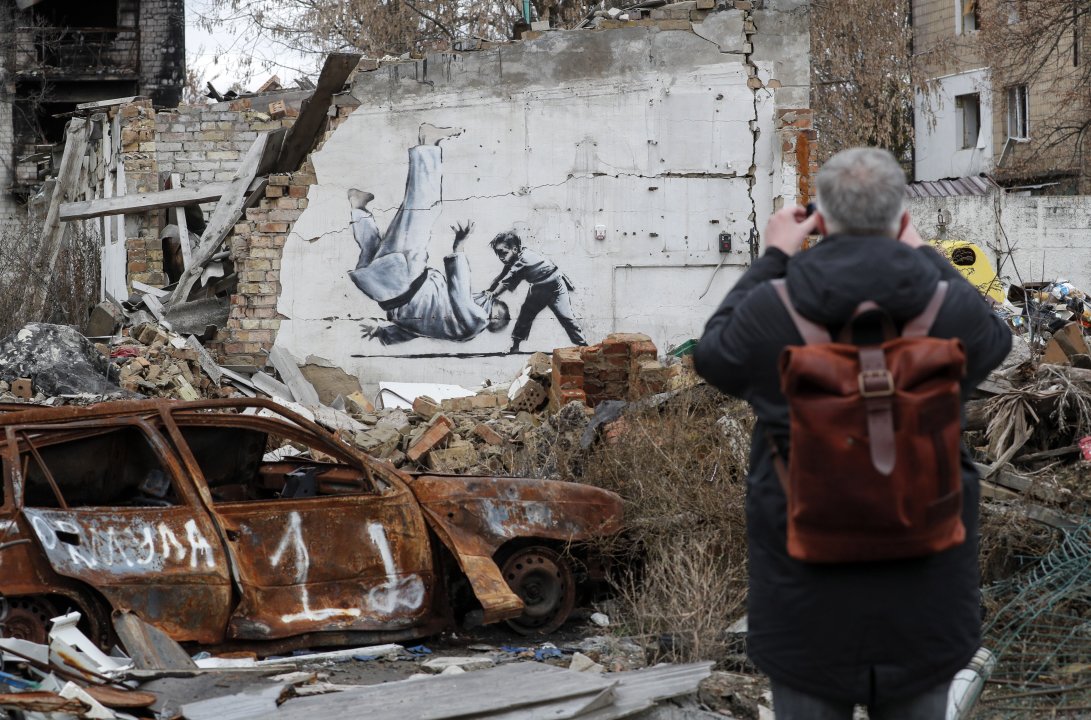 С творбите си Банкси, известен с анонимността си, мистериозните си графити, коментиращи социалната реалност, видимо застава на страната на Украйна. Напомняме, че именно Банкси унищожи собствена картина публично след продажбата ѝ на търг през 2018 г. Графитите на артиста могат да бъдат тълкувани като опит за минимален коментар върху случващото се в Украйна. Не е ясно как точно Банкси реализира творбите си там, кой го финансира, каква е детайлната му позиция и дали ресурсите за създаването на творбите не са всъщност по-добре използвани другаде.