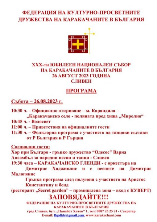 30-и юбилеен Национален събор на каракачаните в България ще се проведе в местността Карандила в последната събота на месец август.