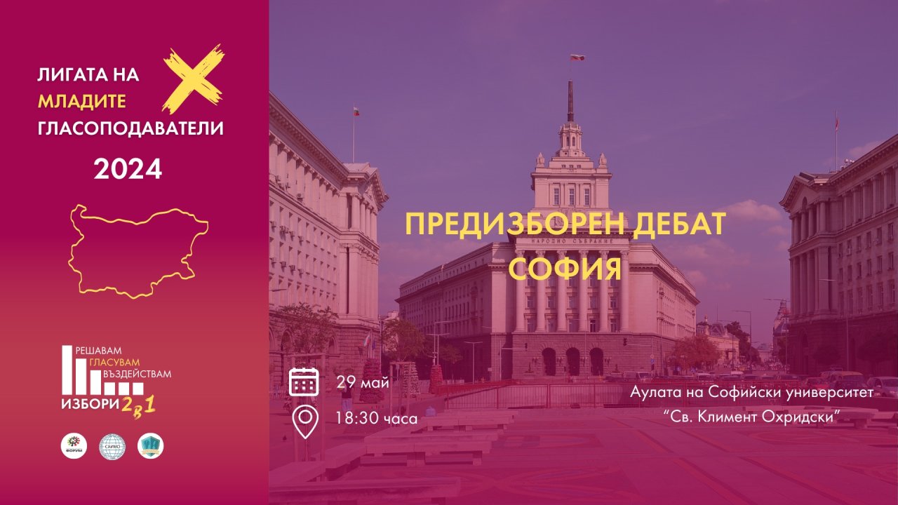 На 29 май от 18:30 ч. в Аулата на Софийски университет “Св. Климент Охридски” ще се проведе първият дебат между кандидат-депутати за национален парламент от тазгодишното издание на Лигата на младите гласоподаватели. То ще се състои по инициатива на три младежки организации - Национален младежки форум, Студентска асоциация за изследване на международните отношения и Студентски клуб на политолога. Целта им е да се създаде платформа за младите хора, която да им позволи да проведат пряк диалог с кандидати-депутатите и да зададат директно своите въпроси.