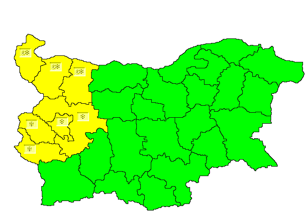 Областите с предупреждение за снеговалежи са София, Перник и Кюстендил. В тези райони се очаква образуване на снежна покривка. В областите Видин, Враца и Монтана жълтият код е за сняг и поледици.