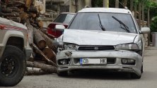 Собственикът на магазина пристигнал 10 минути след удара, в колата нямало водач, тя била заседнала в чадъра.