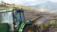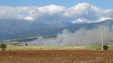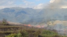 Пожарът е на два фронта - на изток върви към стария път Благоевград-Бараково, а на запад - към дерето с лозя на входа на село Рилци.