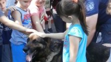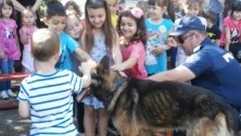 Накрая малчуганите имаха удоволствието да се снимат с полицейското куче, а много от тях се осмелиха и да го погалят.